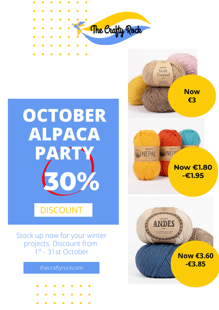 October is here and so is the Drops Design Alpaca Party with a great discount of 30% on our most popular wools. Beautifully soft, 65% wool and 35% alpaca, these wools are amazing to work with and make great garments, accessories and throws. Check out the free patterns on the Drops Website to get lots of ideas for your winter knitting projects. There's a wide choice of shades to choose from too.