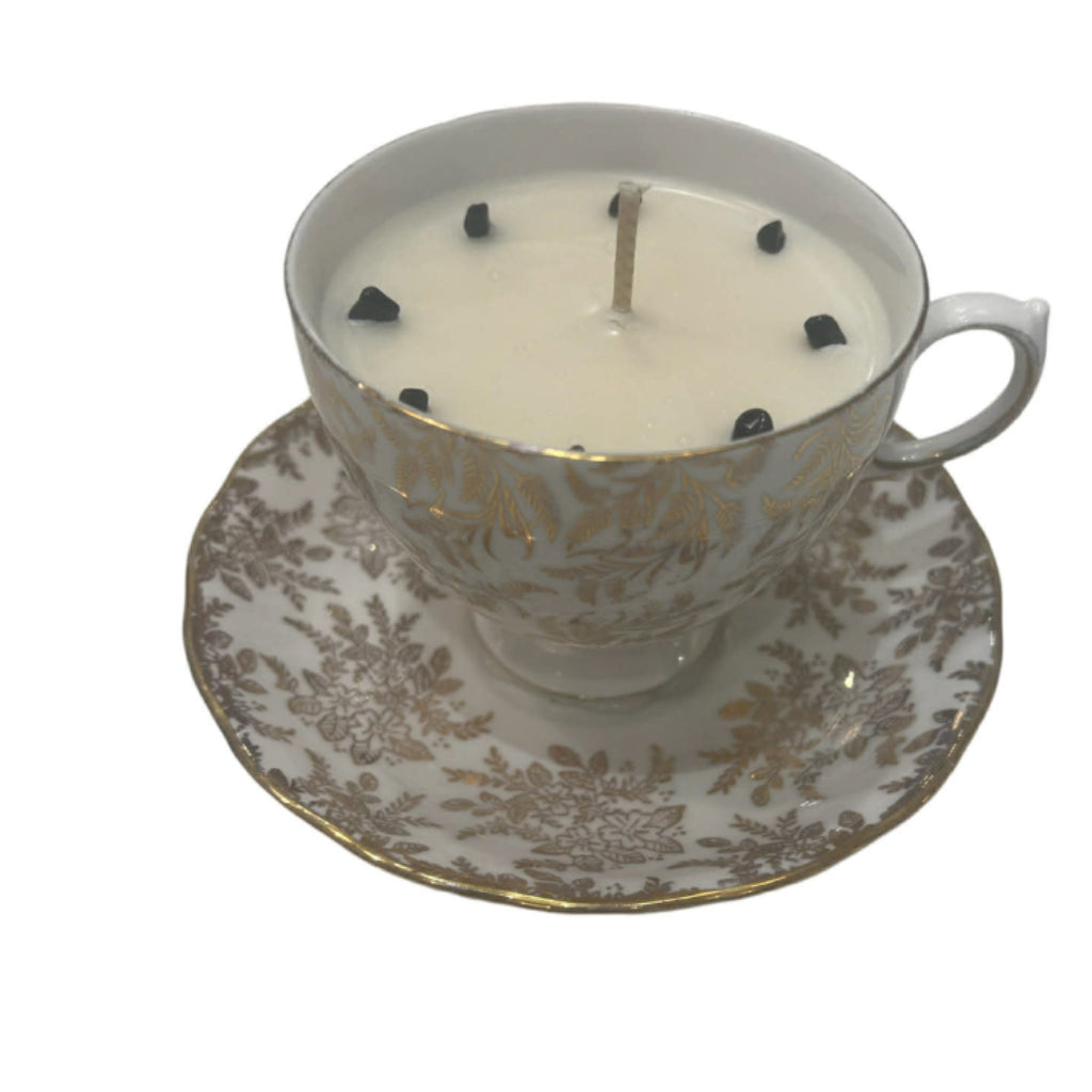Unwind with these beautiful tea cup candles featuring essential aromatherapy oils , natural healing crystals or wax flowers.
