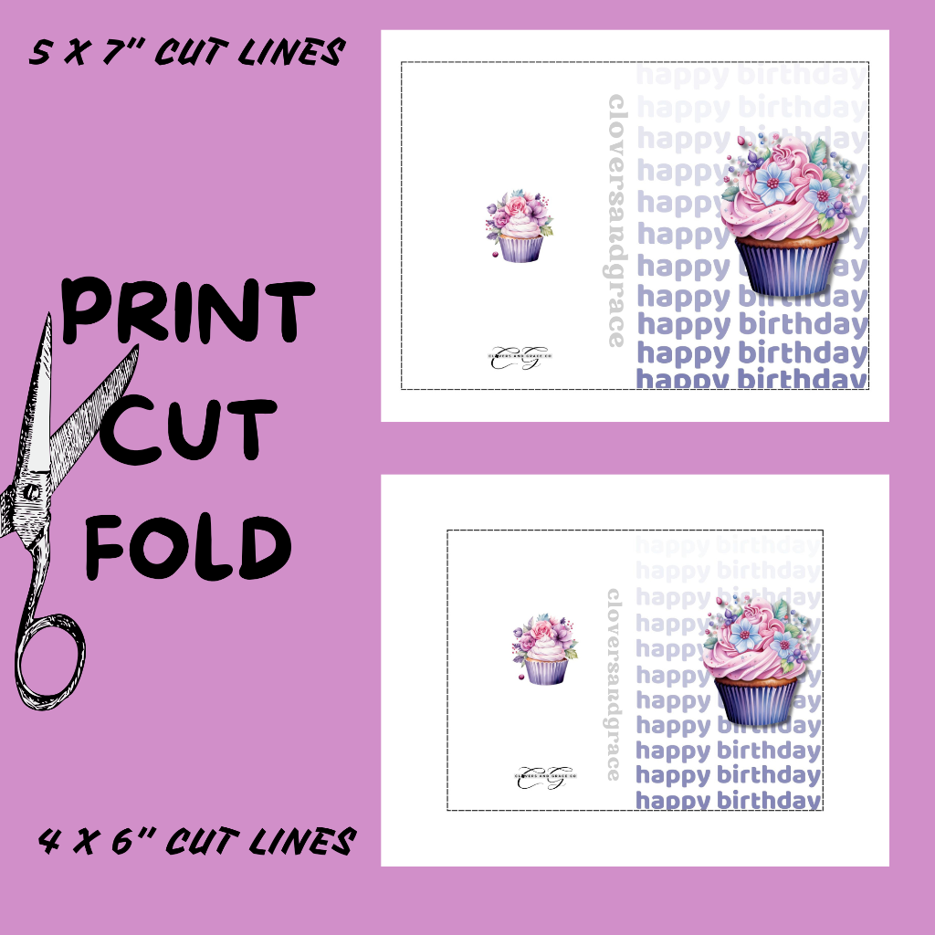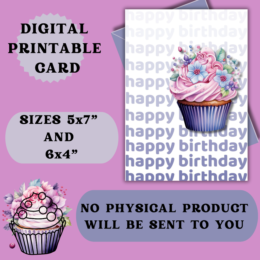 Show your love and appreciation for everyone in your life with this beautiful, bright-coloured birthday card with a decadent cupcake on it. I hope it will add that little bit of 'wow' to the recipient's special day. Easily download and print this card in two sizes, 5x7'' (13x18cm) and 4x6'' (10x15cm)