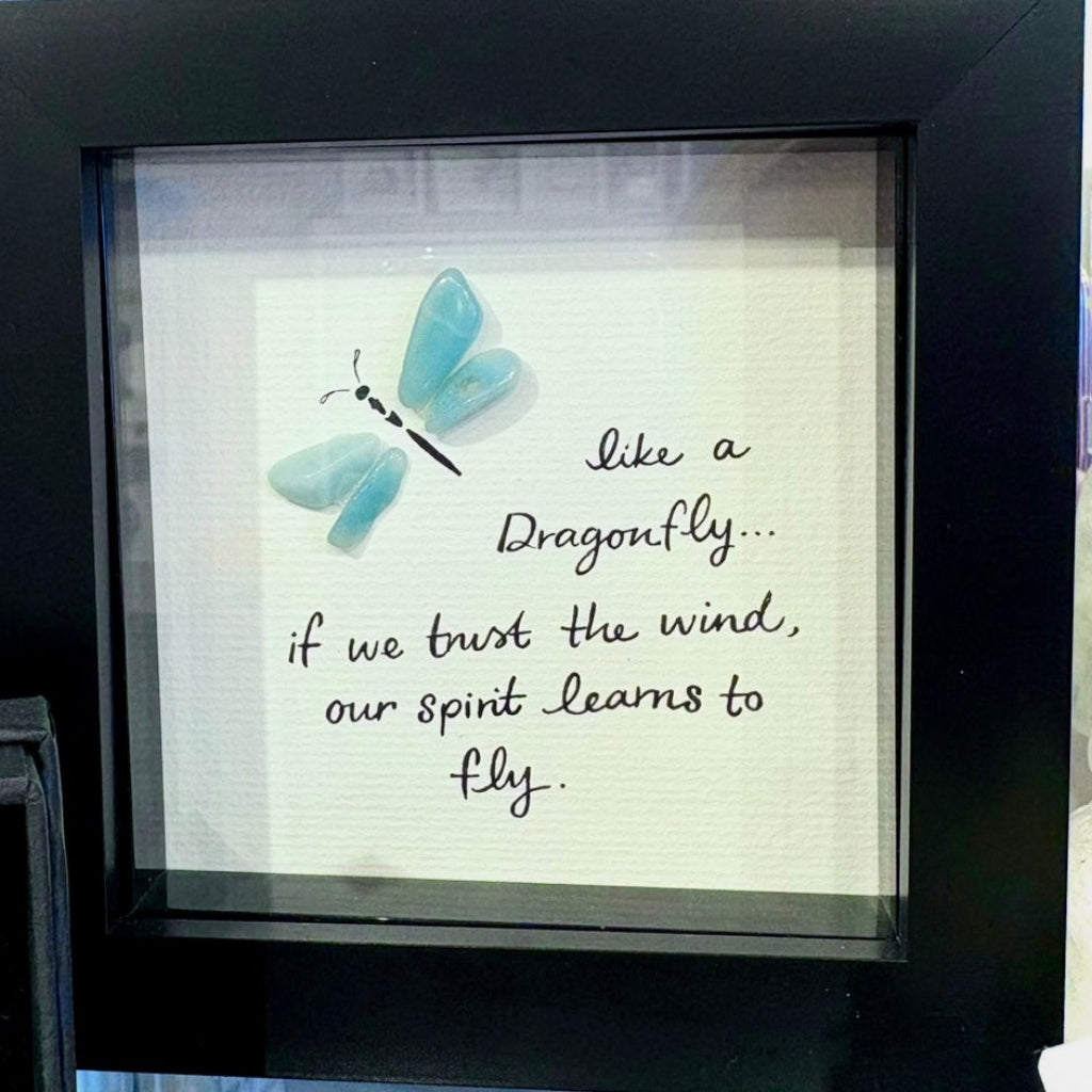 Each frame is carefully handcrafted, using crystal chips and stones to complement uplifting messages — making every piece unique. Whether placed on a shelf, desk, or wall, they add a gentle touch of positivity and calm to any space.