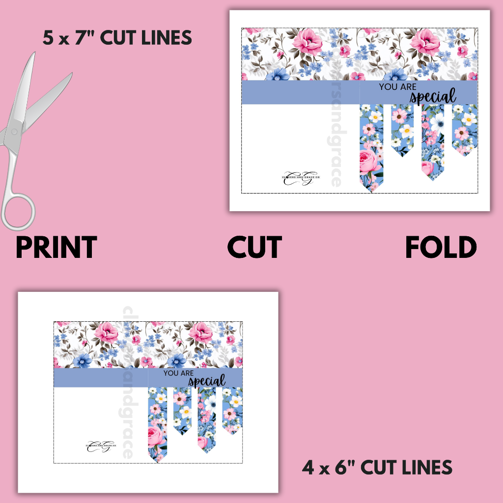 You are special.... only 3 words but it says it all.  This card can be used for any occasion.  Birthday, Mother's day and even for an anniversary. Spoil someone special in you life with this lovely bright coloured pink and blue floral card