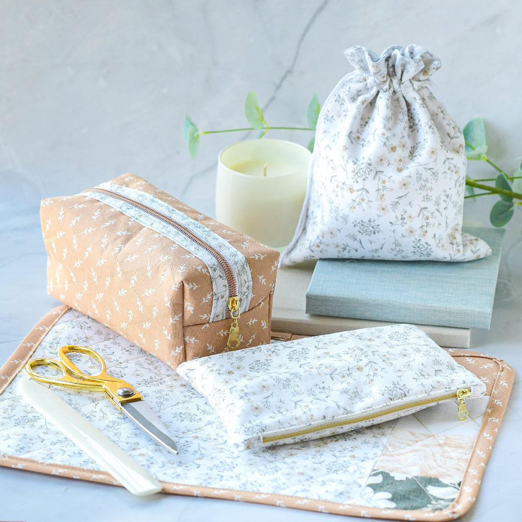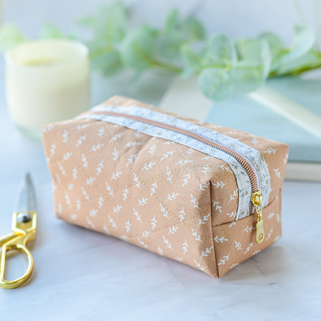 Using the skills learned in the previous weeks — straight stitching, zippers, quilting, and accuracy — you’ll complete a quilted box bag.