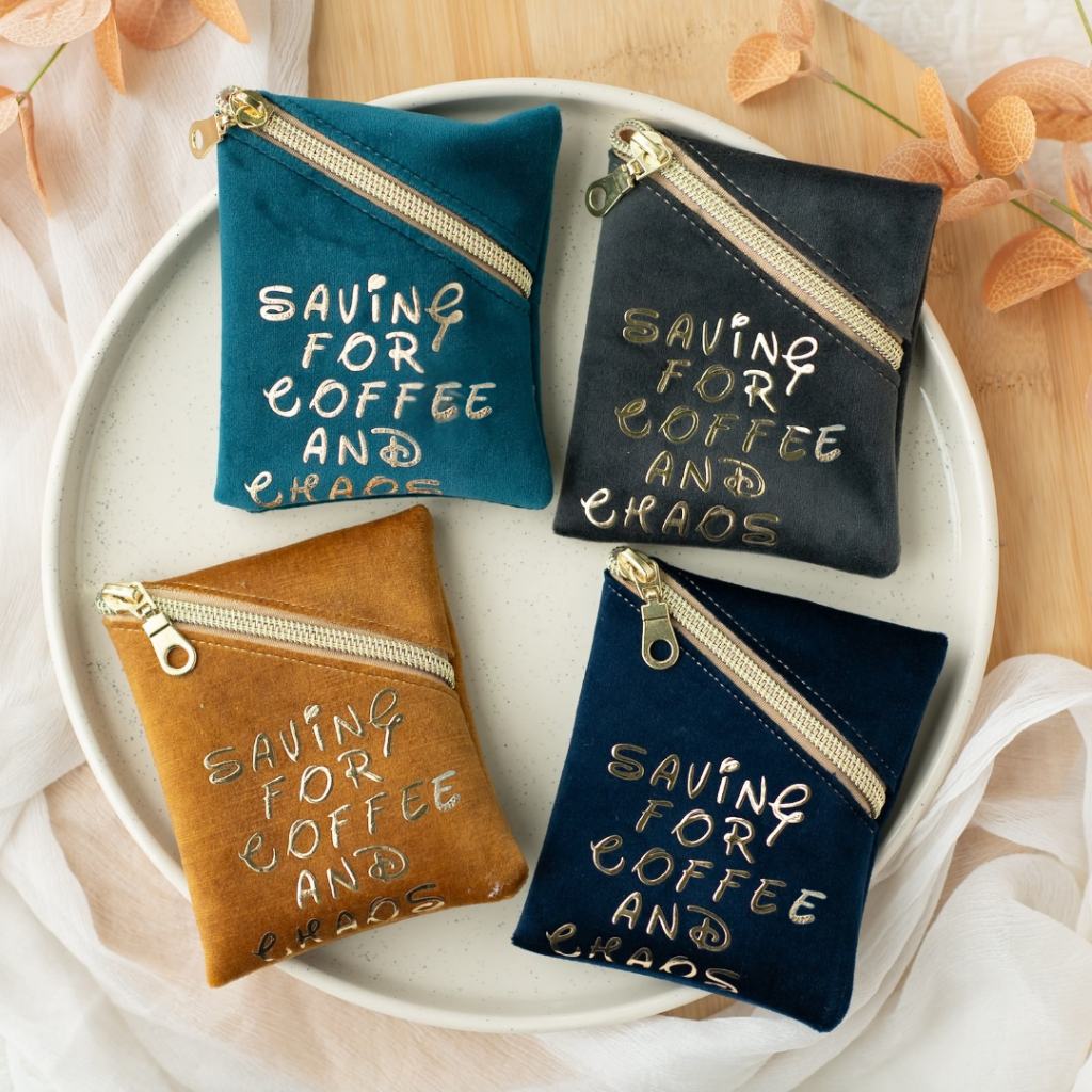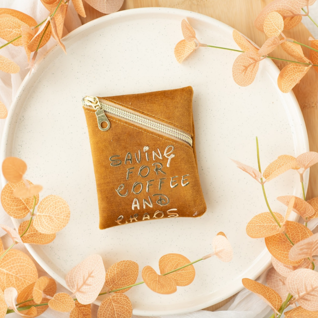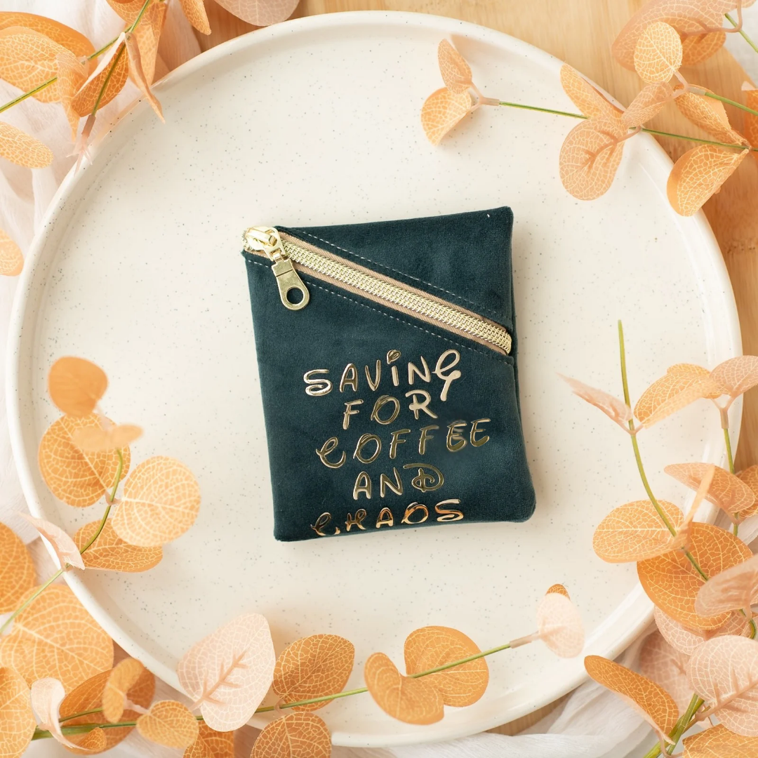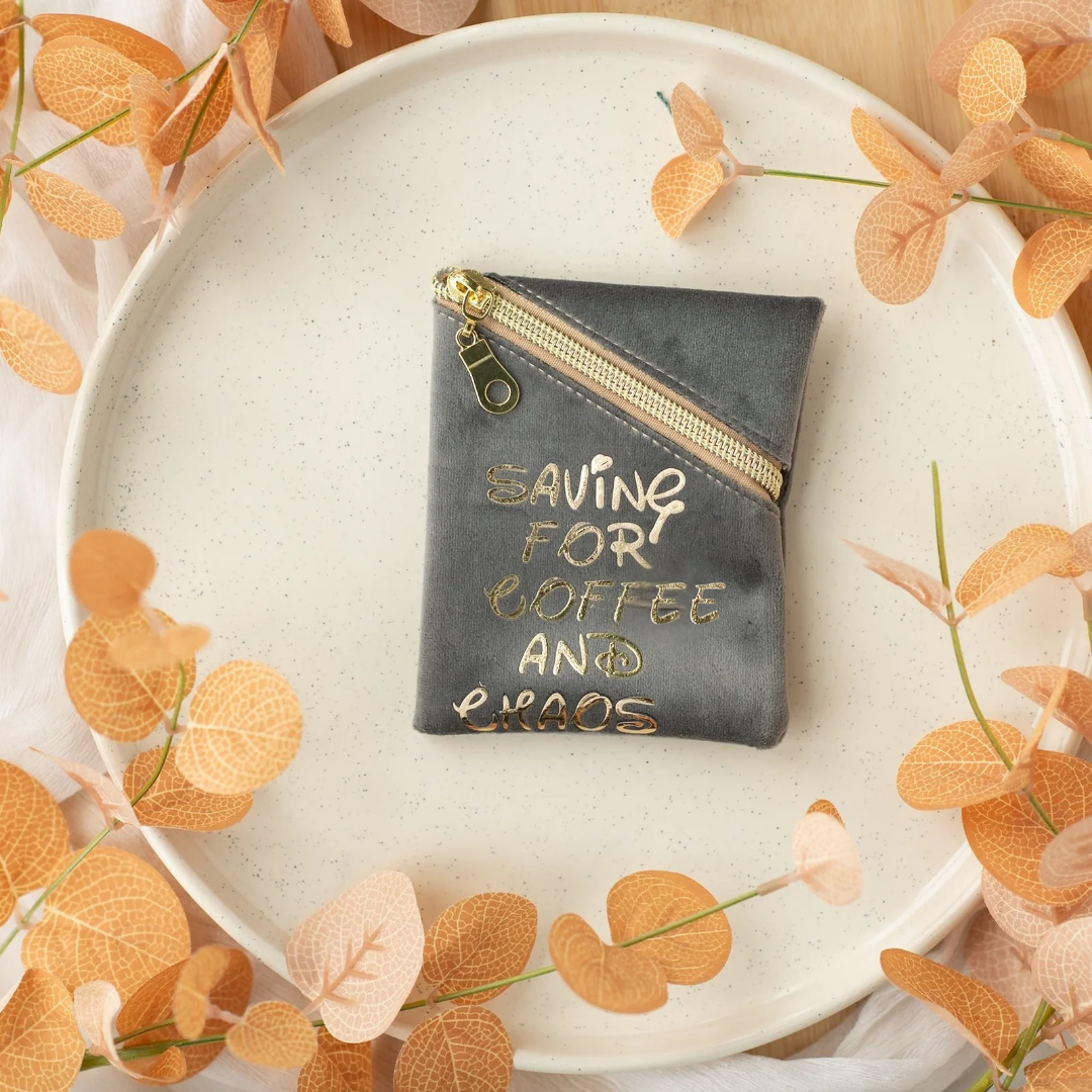 A tiny purse with big priorities: caffeine first, then whatever madness follows. Perfect for coins, secrets, or emergency chocolate money.