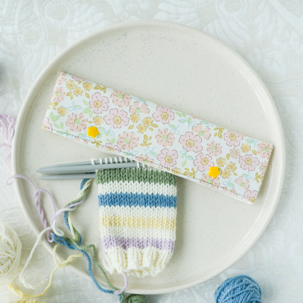 A double-pointed knitting needle cosy (or circular needle holder) is one of those clever little tools that knitters quickly fall in love with once they try it.