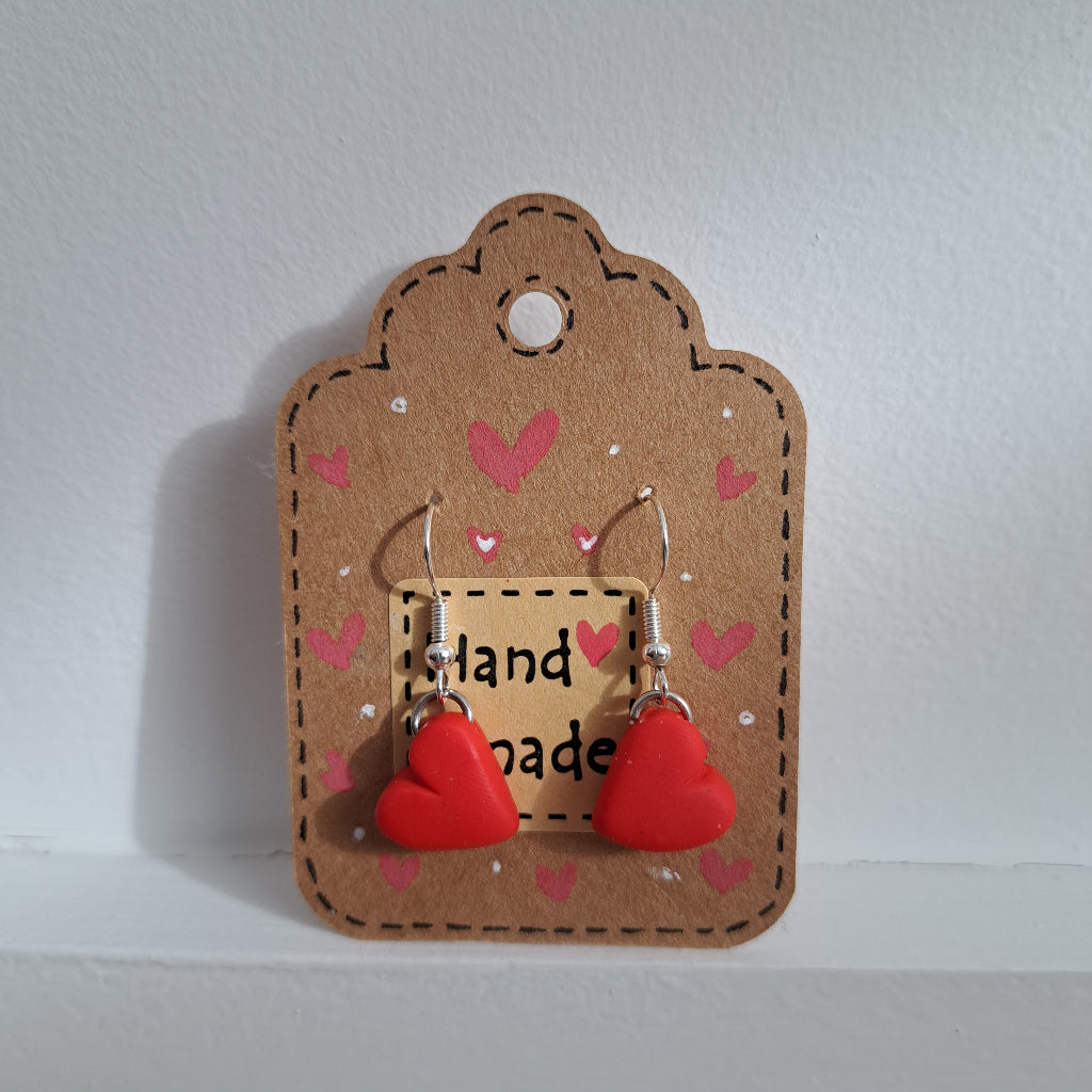• Handmade polymer clay earrings in heart and floral designs