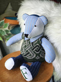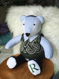 We can make a Memory bear from baby clothes, school uniforms, sport kits, garments worn at a special event or using clothing from a deceased loved one.