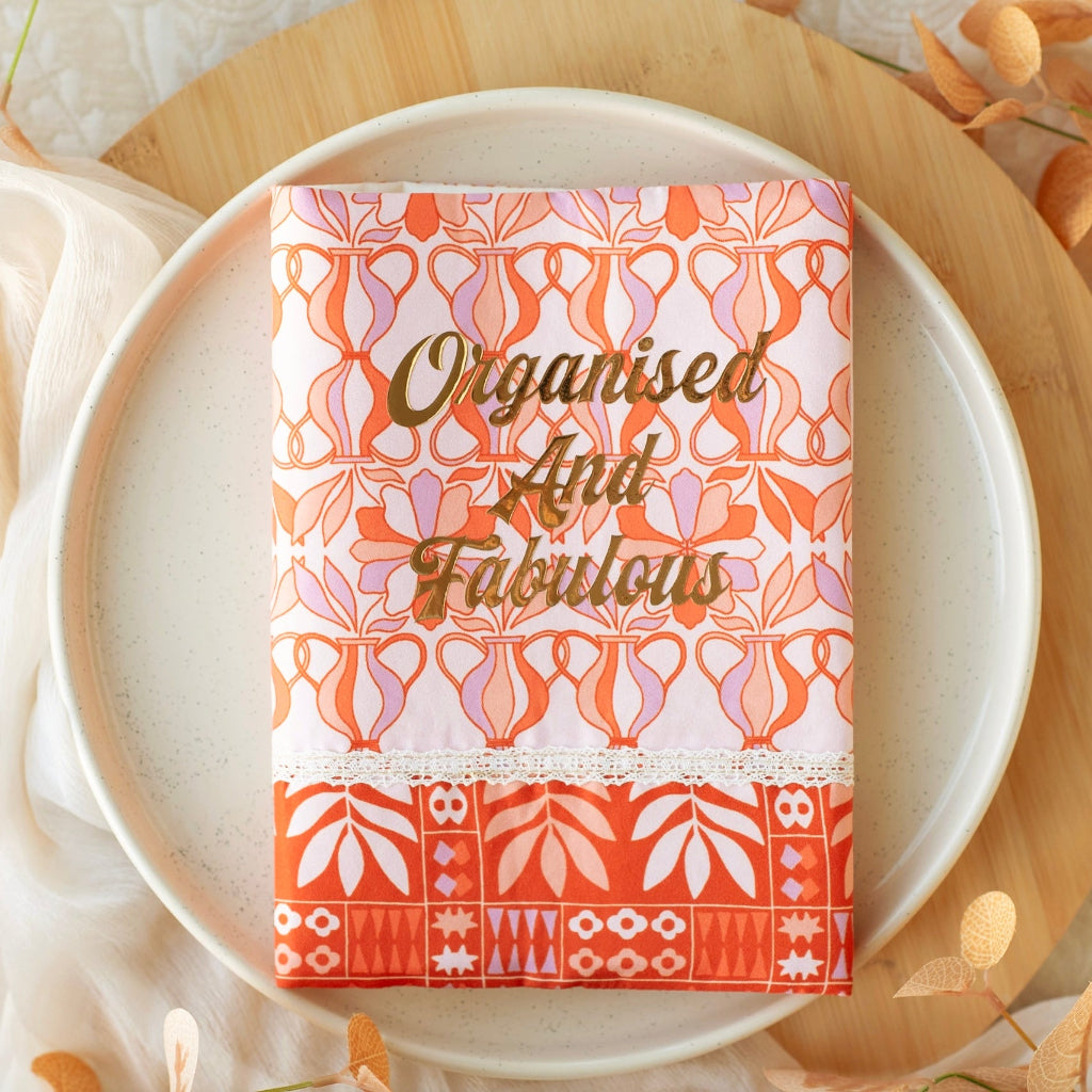 Features the phrase “Organised and Fabulous” in gold lettering